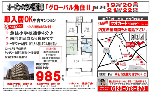 不動産の窓口TOP > 株式会社不動産の窓口のブログ記事一覧 > 【グローバル魚住Ⅱ】9月19日~22日 オープンハウス開催!